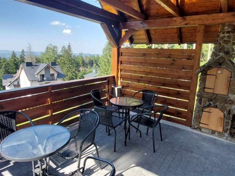 Miejsce na grilla w pergoli zadaszonej z widokiem co zapewnia odpoczynek na świeżym powietrzu