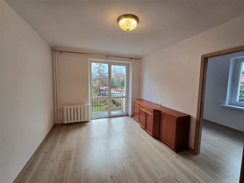 Polecam mieszkanie z balkonem w małym, jednopiętrowym bloku, położone na pierwszym piętrze.
