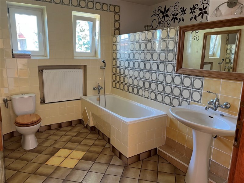 Poddasze ma powierzchnię użytkową równą 57,5m2, gdzie bez problemu można zaaranżować bardzo przyjemne mieszkanie dwupokojowe z osobnym wejściem z wiatrołapu. Poddasze ma przygotowaną podłogę pod łazienkę, ocieplony stropodach, wymienione 6 okien na nowe poddaszowe. Dodatkowo została wyciągnięta tam instalacja wodna, kanalizacyjna oraz piony od ogrzewania tak by w przyszłości można było rozprowadzić sieć po poszczególnych pomieszczeniach. Właściciel w ostatnich latach poczynił nie mała inwestycję i wymurował nowe kominy z cegły klinkierowej.