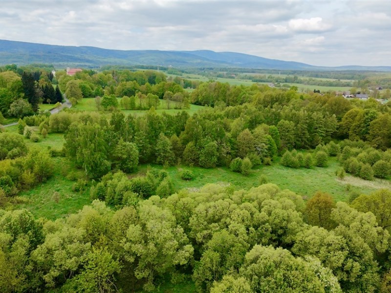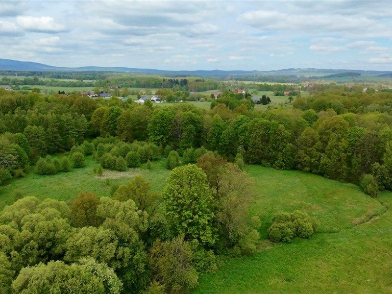 Ukształtowanie terenu: działka o zróżnicowanym charakterze, z pięknym widokiem na okoliczne wzgórza i lasy