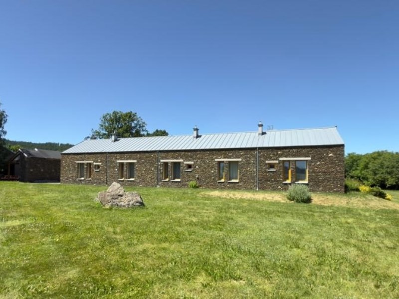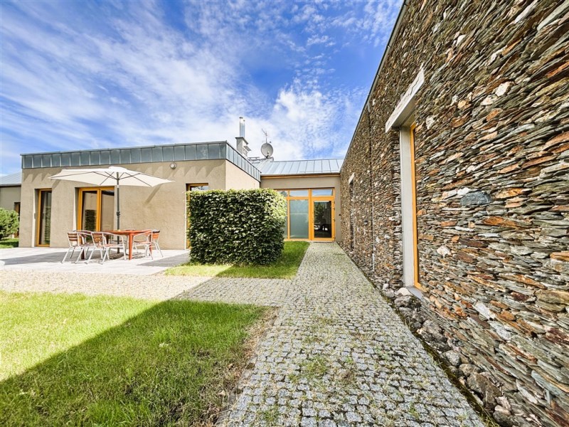Elewacja wschodniego skrzydła budynku została wykonana z naturalnego łupka serycytowego grubości 13 cm z pustką powietrzną między dwiema ścianami muru.Pozostałe ściany wykończone są tynkiem szlachetnym.
