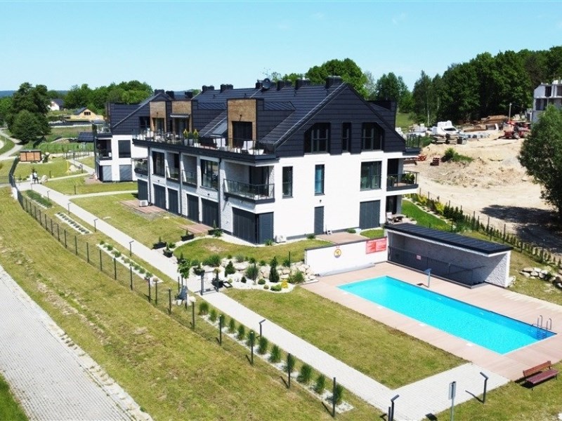 garaż podziemny, windę, monitoring, basen zewnętrzny z podgrzewaną wodą z plażą i leżakami, plac zabaw, siłownię zewnętrzną i wewnętrzną, saunę fińską, warsztat rowerowy.