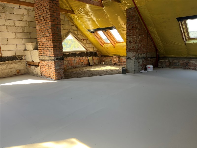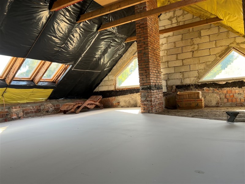 Poddasze ma powierzchnię użytkową równą 57,5m2, gdzie bez problemu można zaaranżować bardzo przyjemne mieszkanie dwupokojowe z osobnym wejściem z wiatrołapu. Poddasze ma przygotowaną podłogę pod łazienkę, ocieplony stropodach, wymienione 6 okien na nowe poddaszowe. Dodatkowo została wyciągnięta tam instalacja wodna, kanalizacyjna oraz piony od ogrzewania tak by w przyszłości można było rozprowadzić sieć po poszczególnych pomieszczeniach. Właściciel w ostatnich latach poczynił nie mała inwestycję i wymurował nowe kominy z cegły klinkierowej.