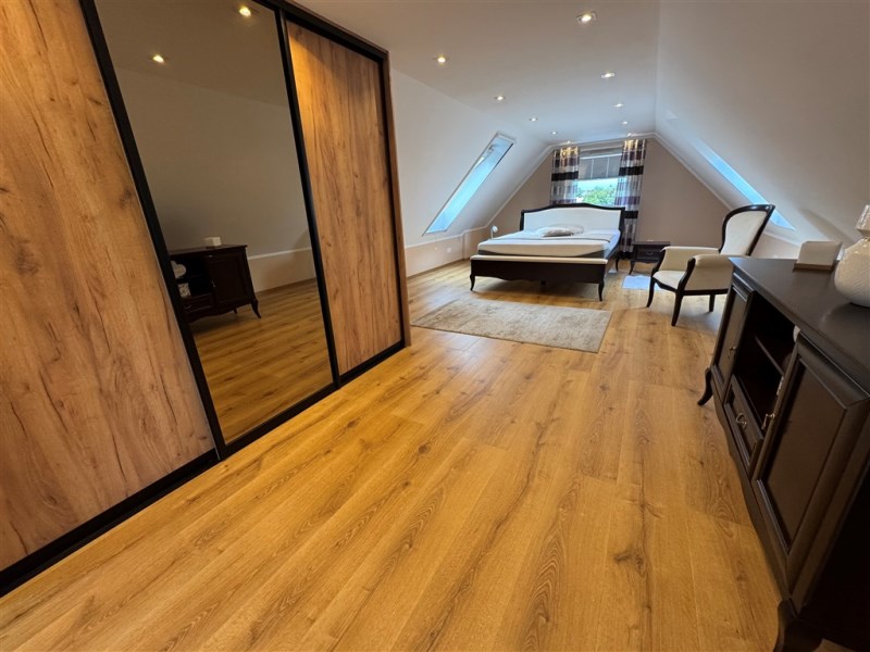 Całkowita powierzchnia użytkowa: 196 m² (w dokumentach: 117,25 m² – różnica wynika ze skosów i innych elementów konstrukcyjnych).